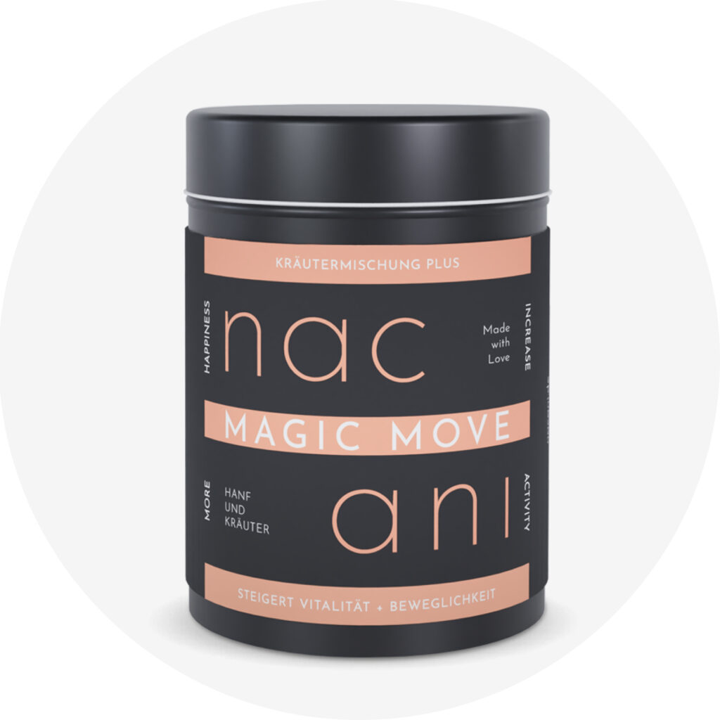 The unique combination of valerian root, hemp leaf powder with natural CBD, lemon balm leaves, ginkgo leaves, hops flowers, chamomile flowers, and pure yeast as a natural source of vitamin B gently calms and supports your dog’s well-being. The herbal blend is simply added to the food. The dosage is designed to cover the daily requirement of the herbal blend while maintaining a consistent CBD base level. Additional CBD, such as through our hemp oil or nacanis, can be added if desired.